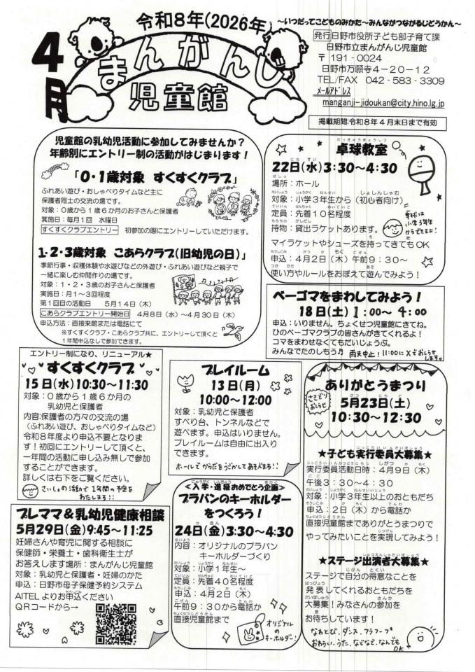 まんがんじ児童館 のお知らせ・イベント